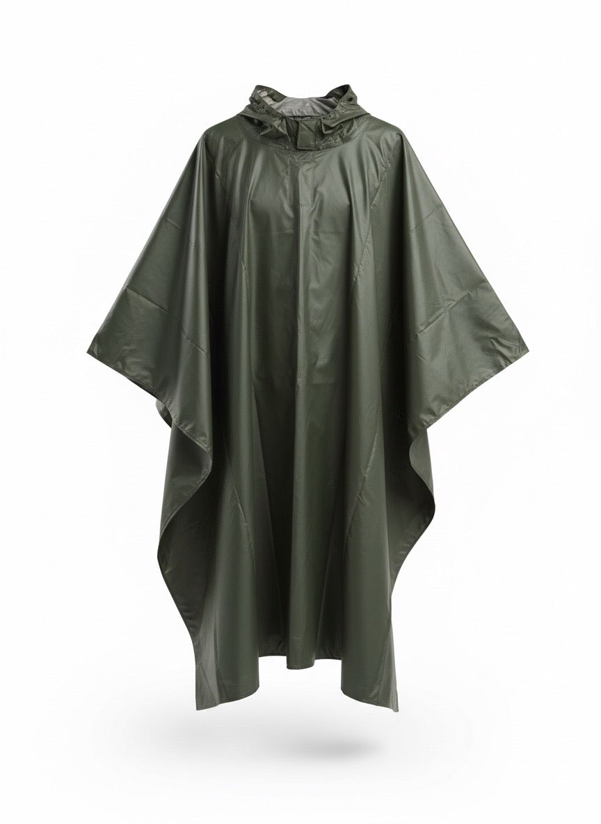 The OLIVE GREEN PONCHO is a versatile outdoor essential. Made of durable ripstop waterproof polyester, it can be used as a raincoat, ground sheet, sun shelter, or wind shelter. Its compact size (140 cm x 197 cm) makes it easy to carry in the included carry bag. Stay prepared for any weather with the GREEN PONCHO.