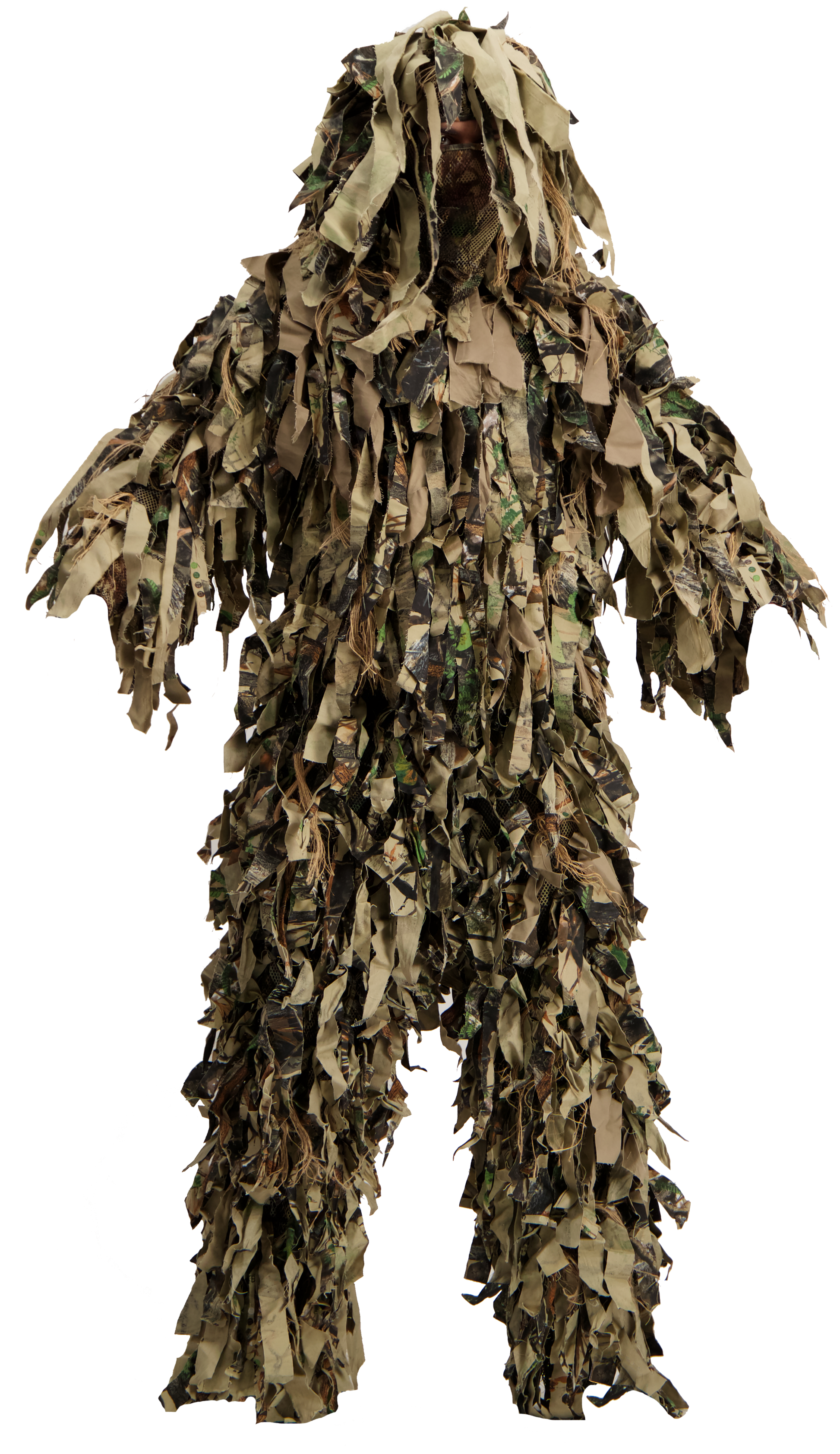 This camo Ghilly suit is constructed of 100% polyester with handy cotton ghilly accents based on classic military sniper patterns. Crafted with a handmade camouflage effect, the suit ensures discreet, traditional coverage.